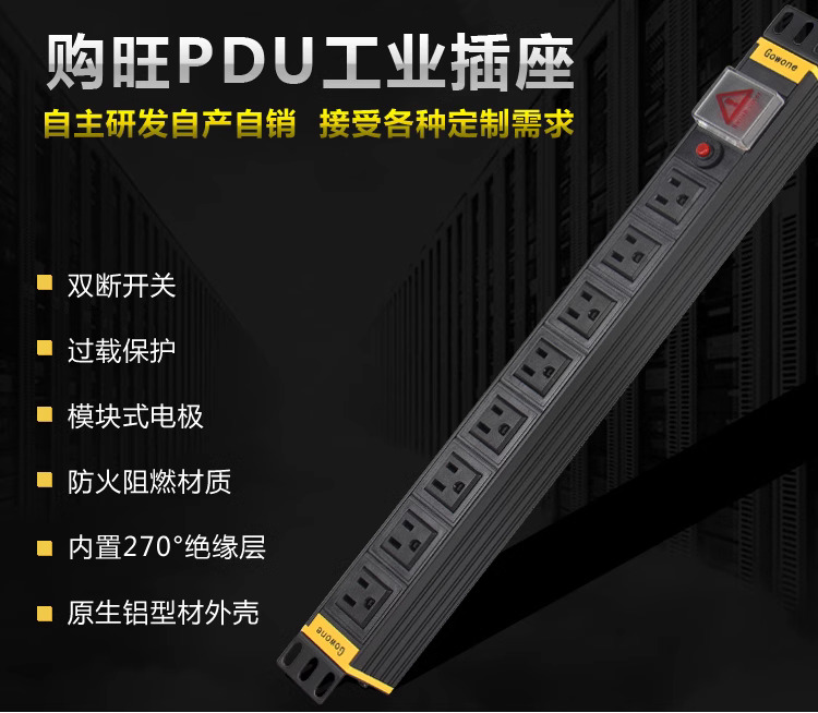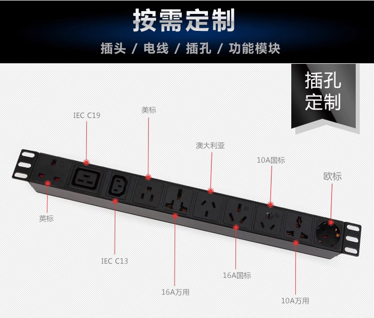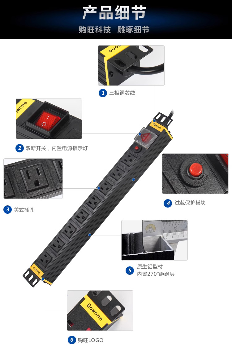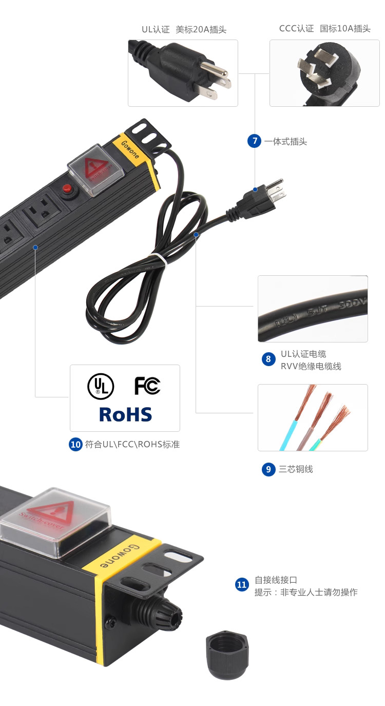 PDU機櫃插座 8位德標插座 16A 250V 2.5米線配美標插頭